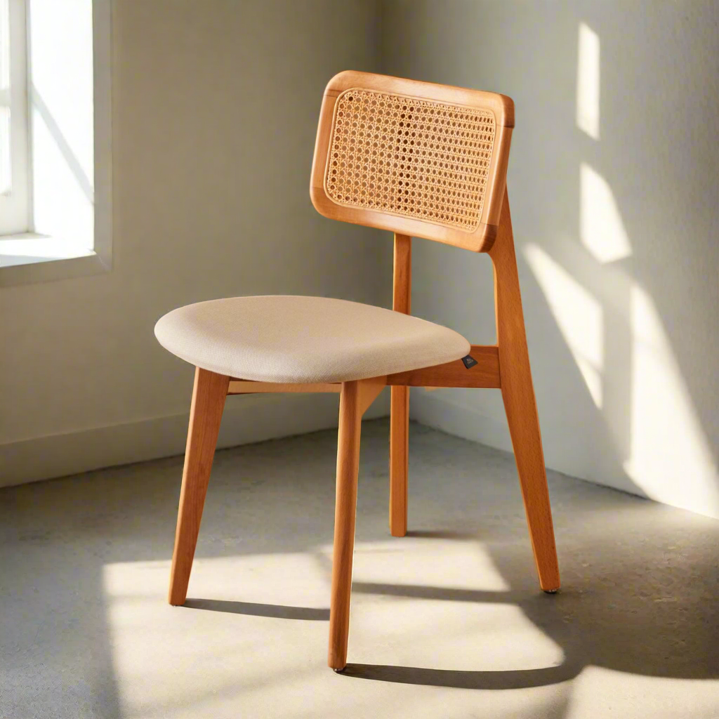 - · Sandalye; %100 Kayın Ağacı, %100 Hasır, Keten Kumaş malzemelerden oluşmaktadır.