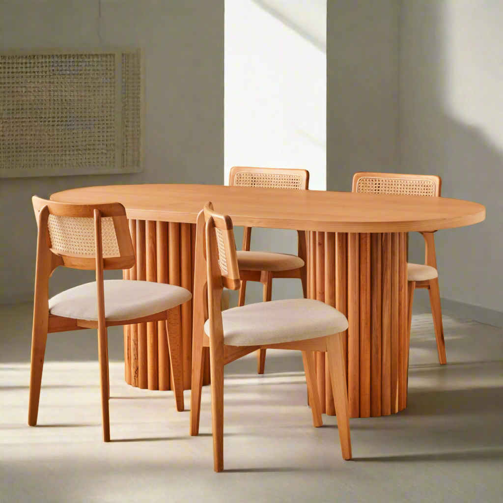 5 Parça Bohem Masa ve Sandalye Seti Naturel