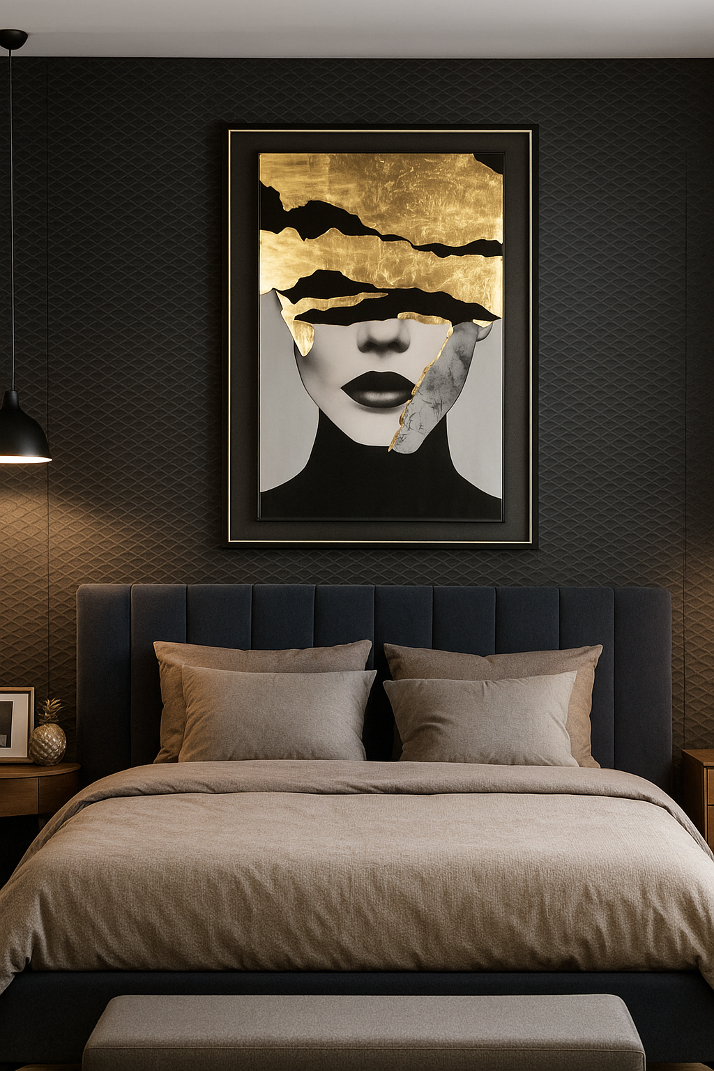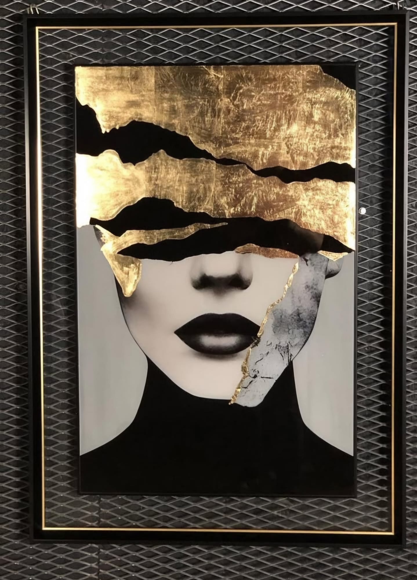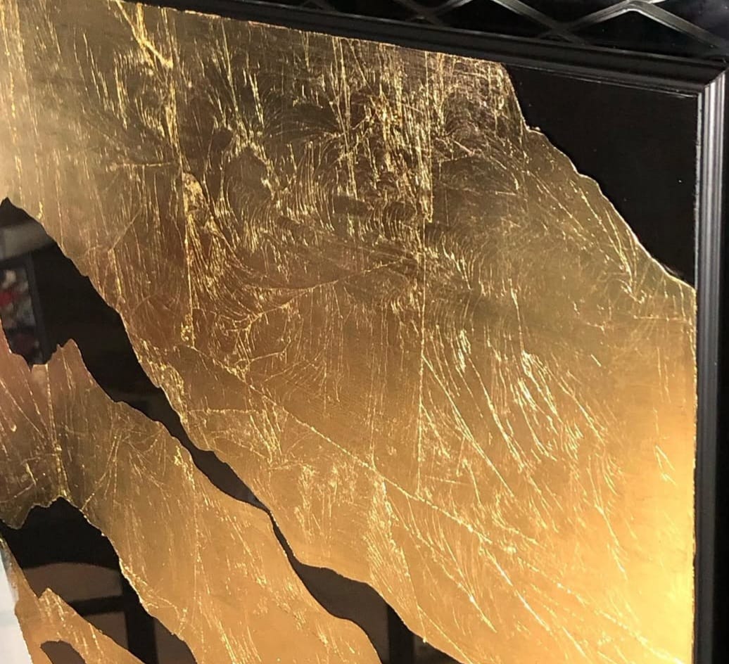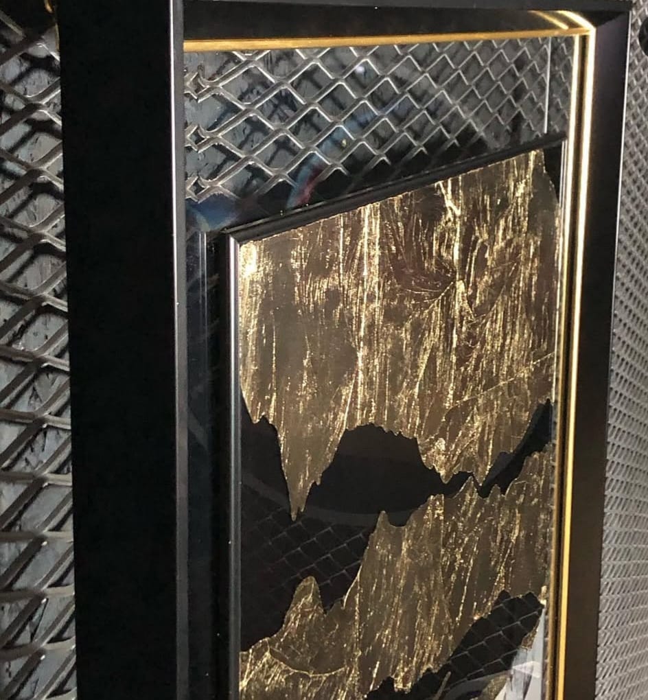 Rölyef dokulu, gold varaklı, cam detaylı, el yapımı, kabartmalı, dijital tablo