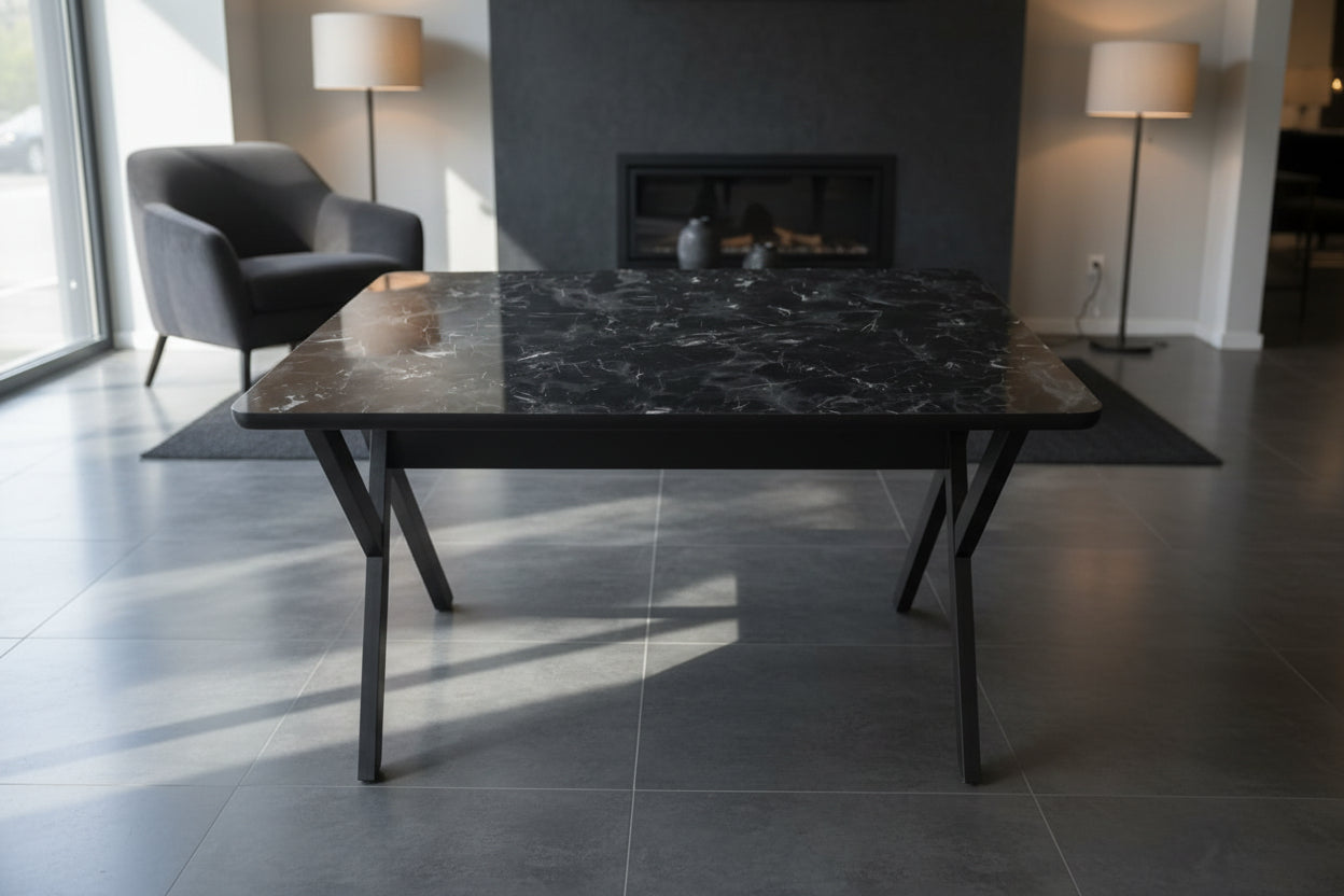 Glossmax Parlak Mermer Desenli Sabit Masa 80x120