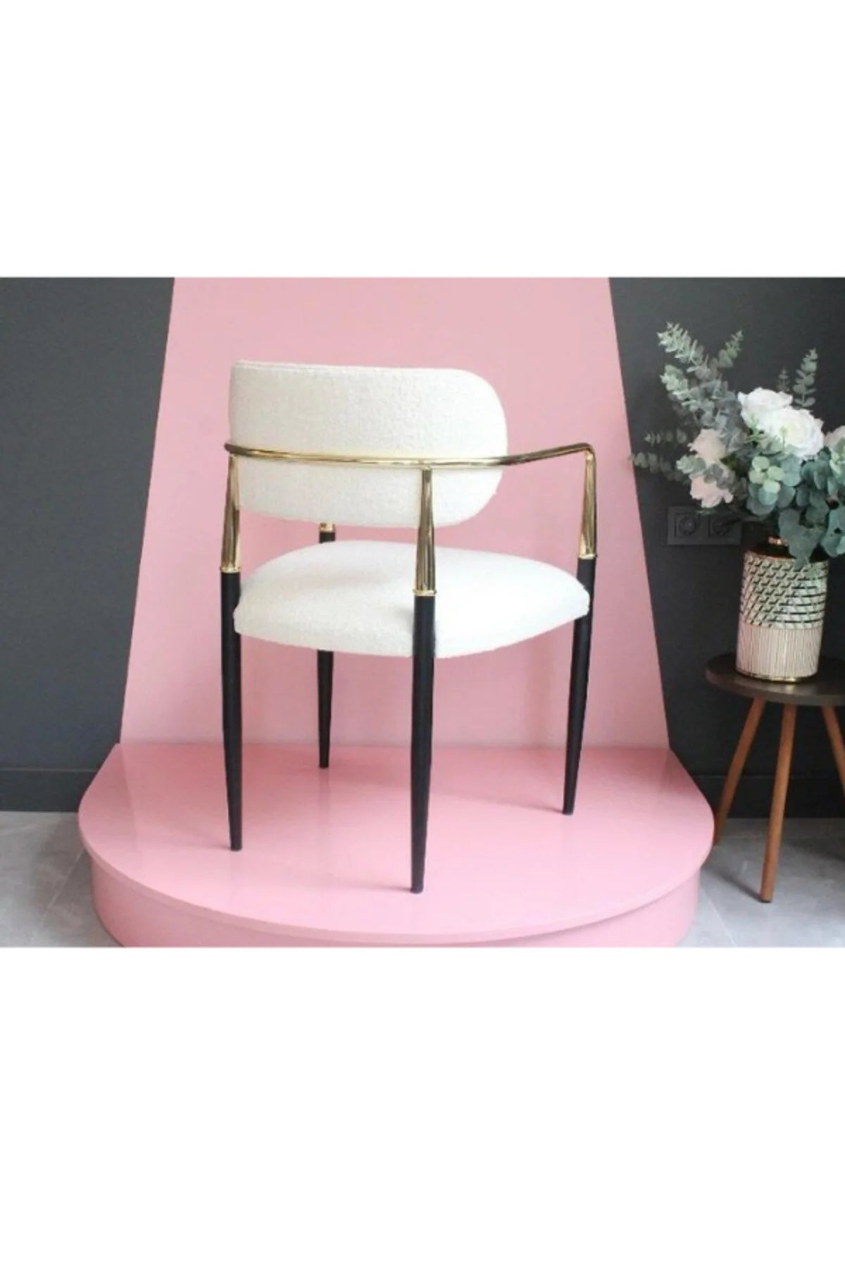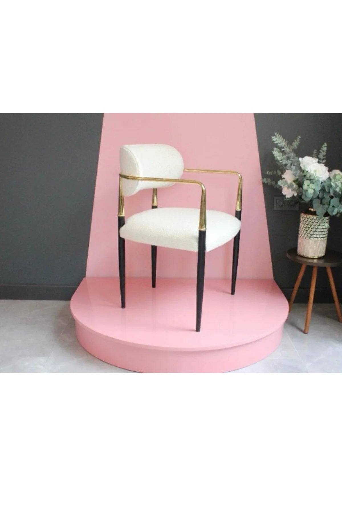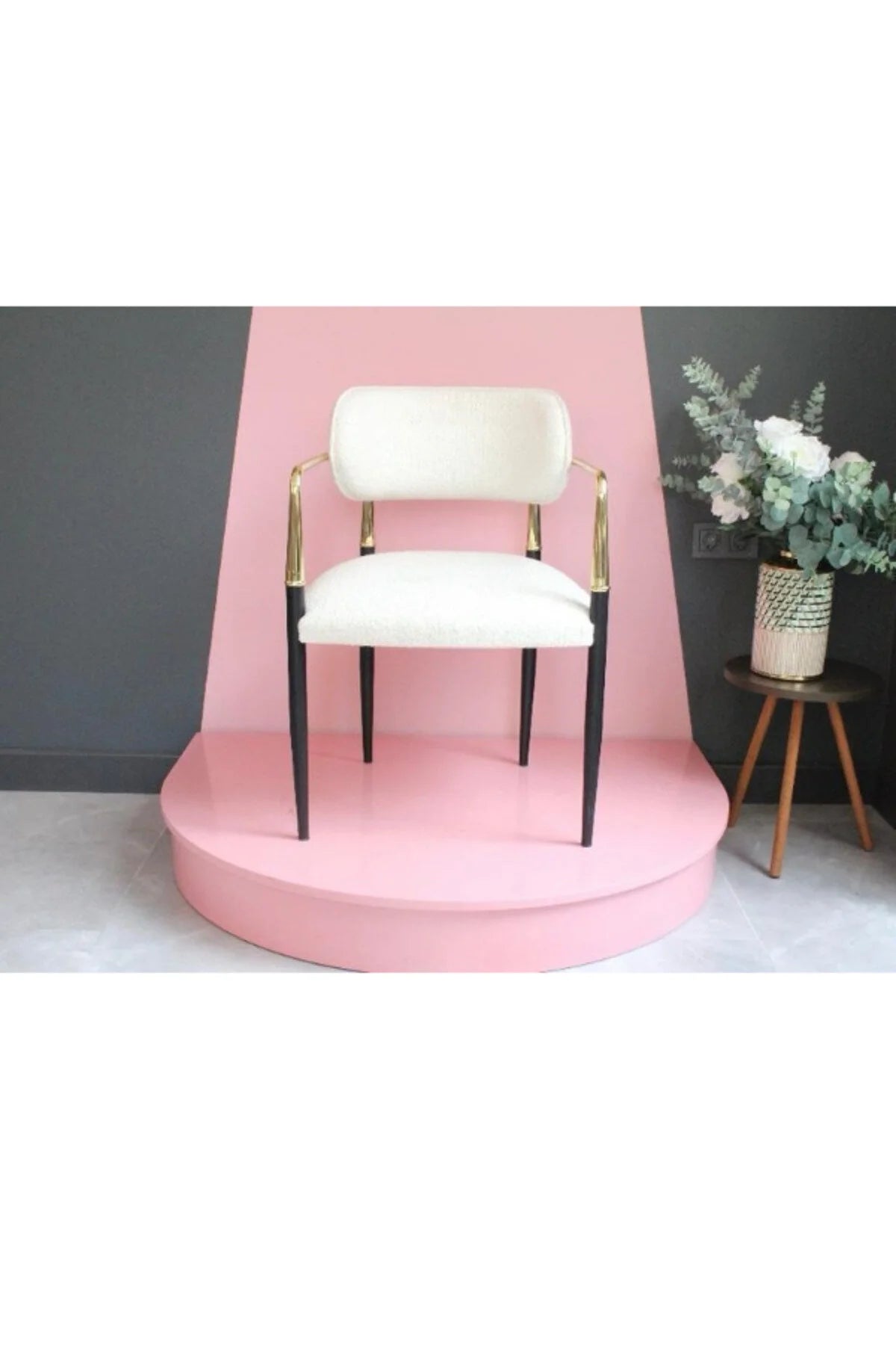 Görseldeki sandalyemiz puffy kumaşlıdır. İstenilen kumaş doku ve metal rengi sipariş sırasında belirtilmelidir.