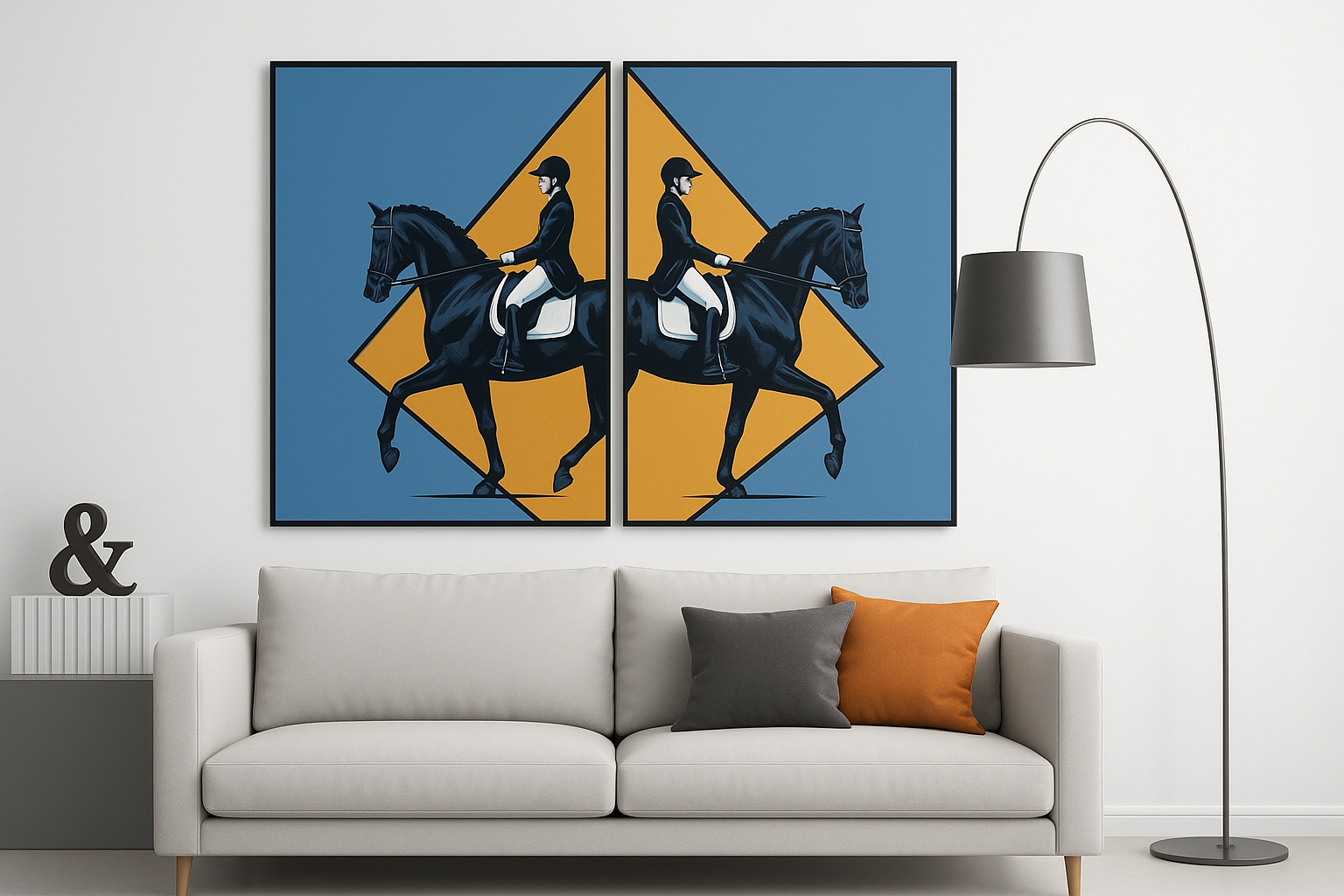 Cam Paspartulu Soyut Modern At ve Binici Tablo Takım